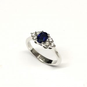 oro 18 kt gr. 10,60 e diamanti kt 0,75 e zaffiro kt 1,40